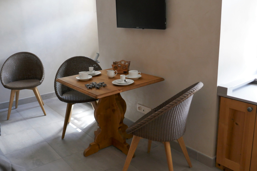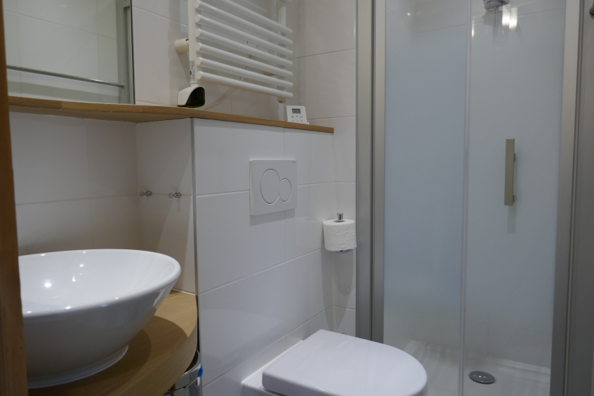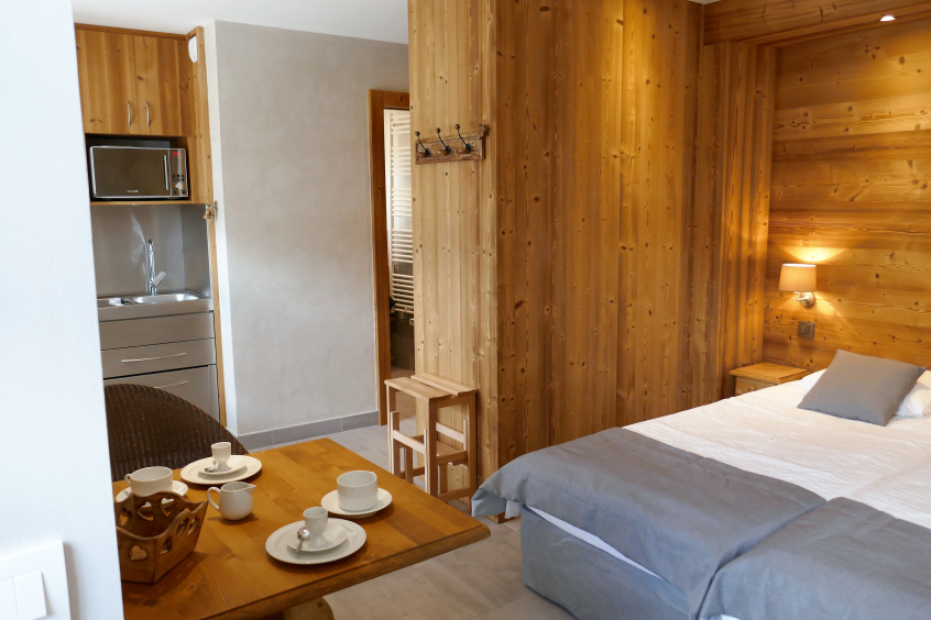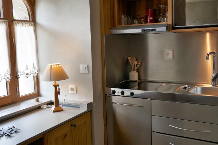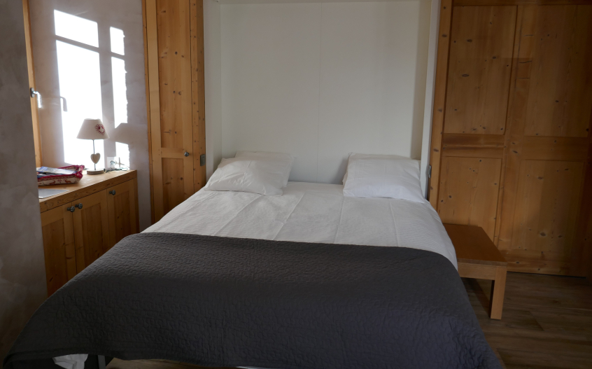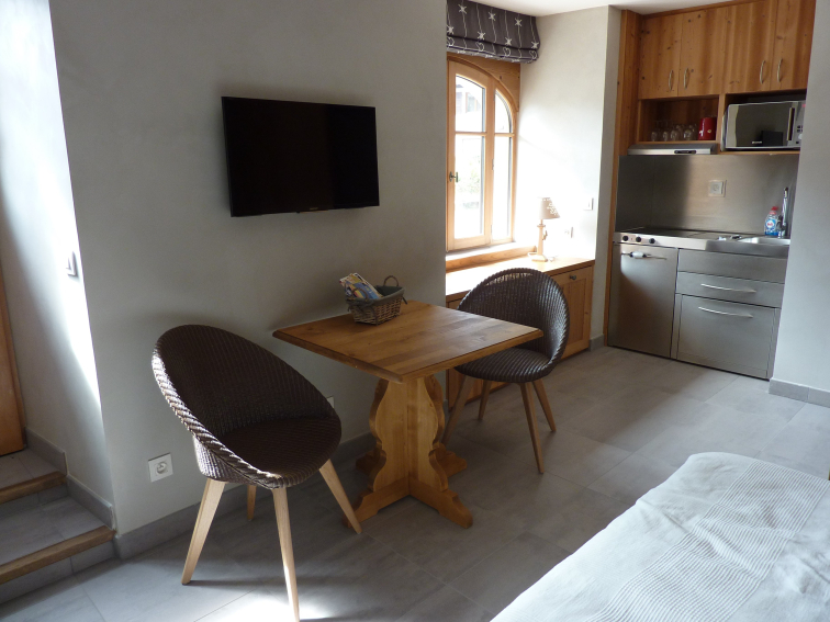 The apartment comprises a studio bedroom for 2 people with bathroom and kitchenette, on the ground floor (chambre Marmotte).