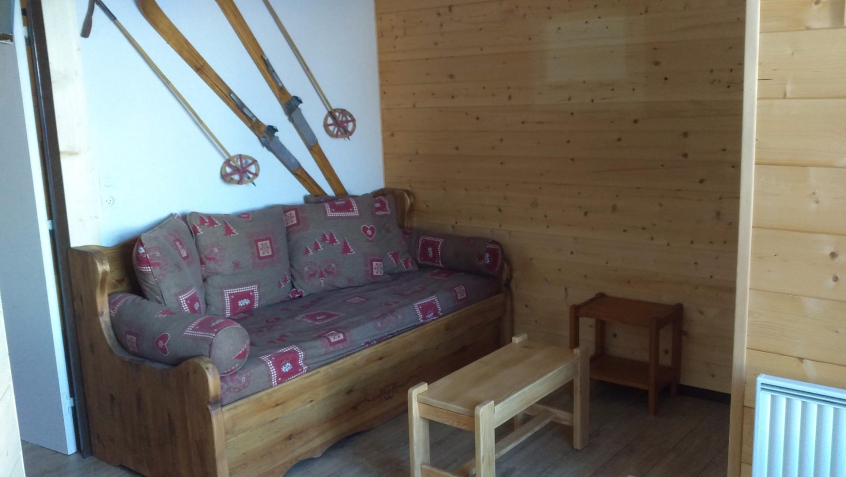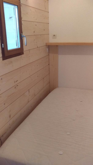 The apartment has an entrance with 2 bunk beds, a living room with a double sofa bed, a bedroom with a double bed and a kitchenette.