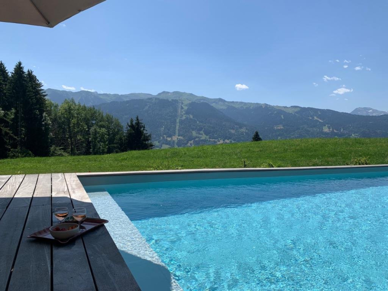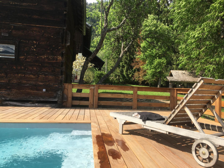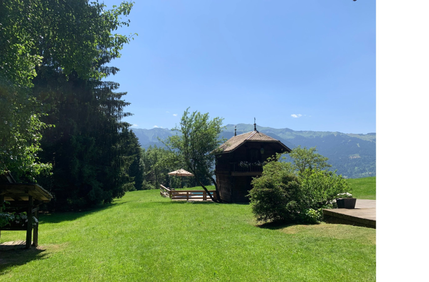 L'Abbaye is a charmingly converted former farmhouse (400 m2), surrounded by 3500 m2 of landscaped gardens amidst alpine pastures. South-facing, with magnificent views over the valley, the large wooden terrace lets you soak up the sun in winter and summer alike.