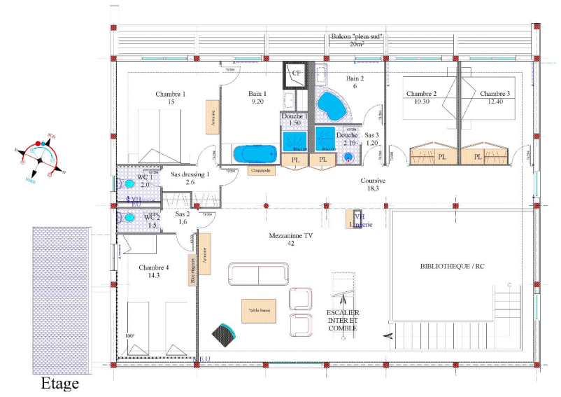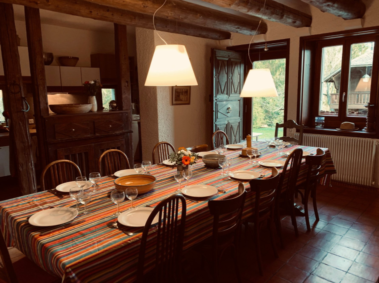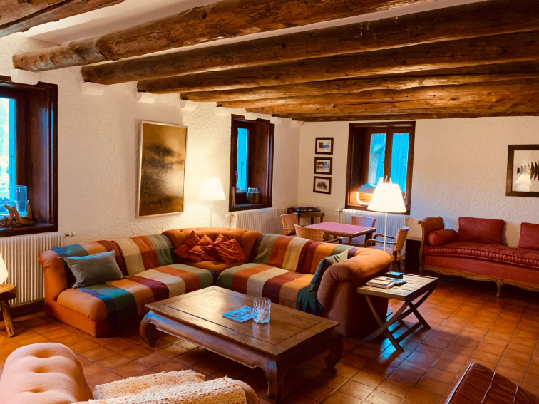A true family home, comfortably accommodating 16 people, with plenty of space to gather around the vast fireplace that separates the dining room from the fireplace area. Separate living areas allow you to play cards, watch TV on the mezzanine or play the piano in the library. A special room has been set aside for children. For greater flexibility, the 6 bedrooms are equipped with 2 x 80 x 200 beds, providing a comfortable 160 x 200 bed, or 2 independent beds. 2 alcoves in the attic, each with 3 x 80 x 200 beds, are ideal for children and teenagers.