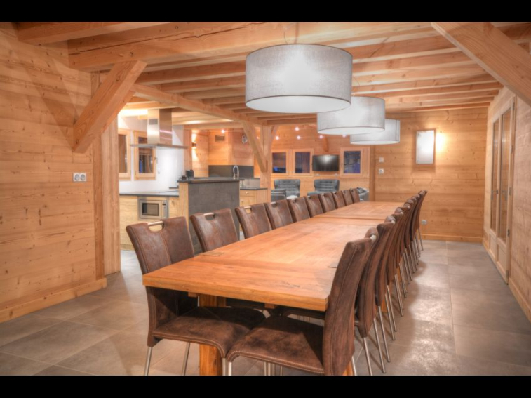 - une grande salle à manger pour 20 personnes, avec 3 grandes suspensions de la marque haut de gamme Hind Rabii