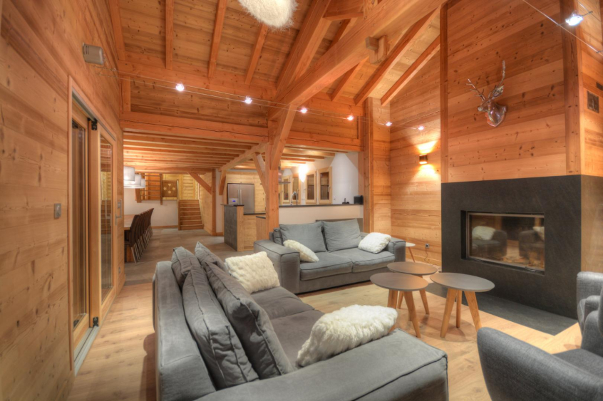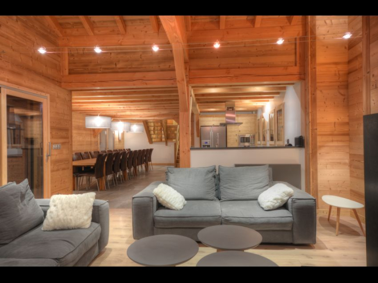 Chalet récent aux prestations exceptionnelles sur les Carroz : 8 chambres, 8 salles d'eau, tout en demi-niveaux avec beaucoup d'intimité pour chacun même pour les grands groupes, sauna, espace détente extérieur avec éclairage en fibre optique colorée dans l'esprit chromothérapie, salle de jeux avec billard et babyfoot, décoration raffinée, moderne et chaleureuse, situé au centre des Carroz (400 m des commerces) et au pied des pistes (250m du téléski débutant télé-école), dans un secteur très calme, face à la nature (forêt et montagnes).