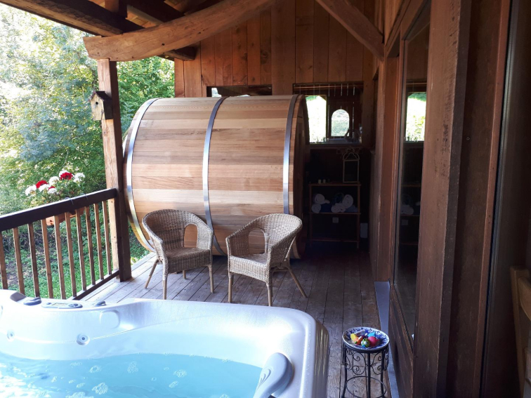 • ou tout simplement la dolce vita au chalet, entre la table, le sauna et le jacuzzi.