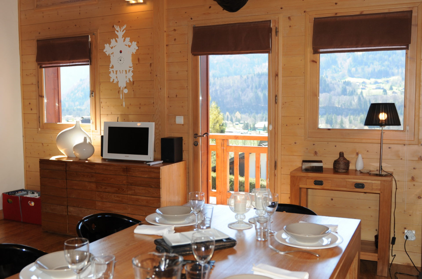 Bel appartement de standing dans un chalet récent et proche du centre du village. Coteau Sud de Samoëns avec vue panoramique.