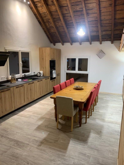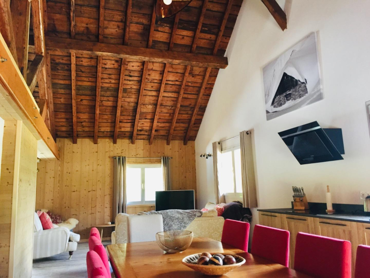 Appartement neuf quatre étoiles dans une ancienne ferme et de caractère. 5 chambres avec 3 salles de bain, pour accueillir jusqu'a 10 adult 1 enfant et 1 lit bebe fourni. Situe a distance de marche du village et du ski-bus l'autre cote de la route. bien meuble et entièrement équipé pour un séjour de detente, local a skis et vélos et parking couvert prive.
