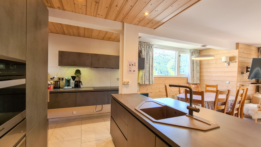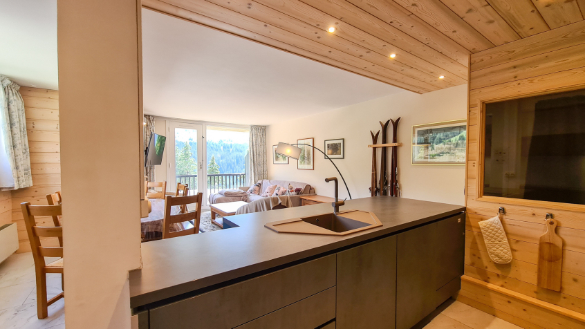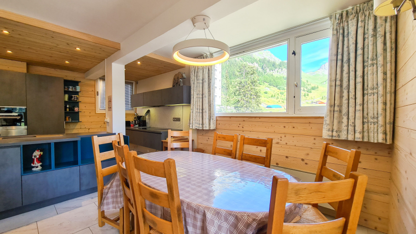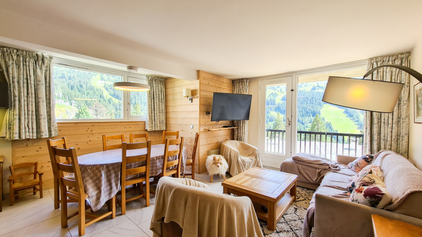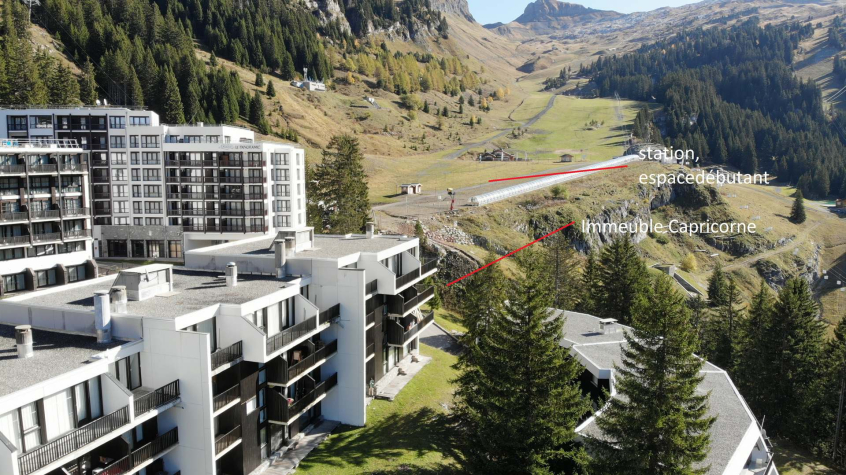 Grand balcon orienté Sud et Est .très calme. Situé au pied des pistes et du rassemblement de l'école de ski