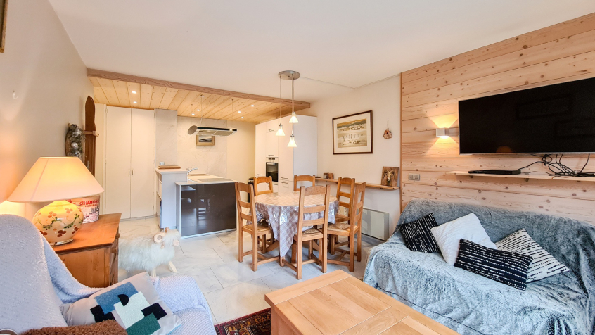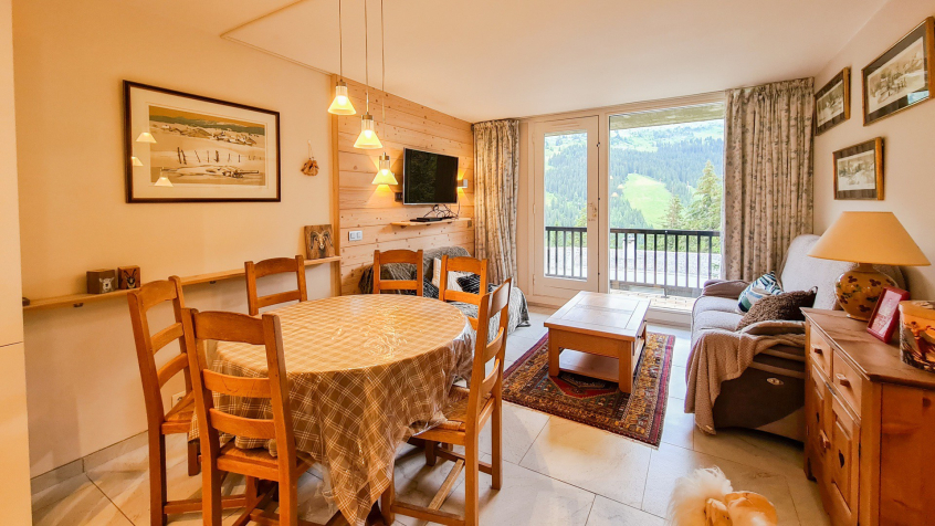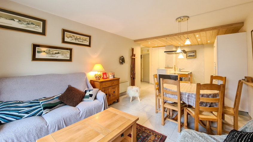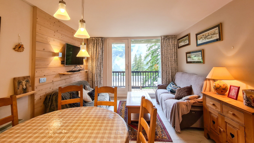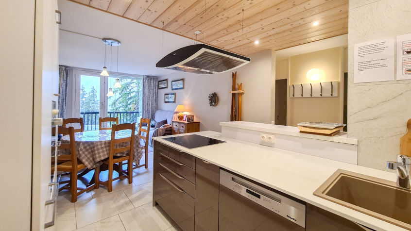 Grand 2 pièces cabine Sud confort 48 m2 au 1er étage (étage de l'entrée, seulement 2 marches pour y accéder) très spacieux et plein Sud. Grand balcon. Très calme. Situé au pied des pistes et du rassemblement de l'école de ski
