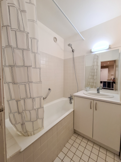 - Salle de bain avec baignoire lave-linge et sèche-linge