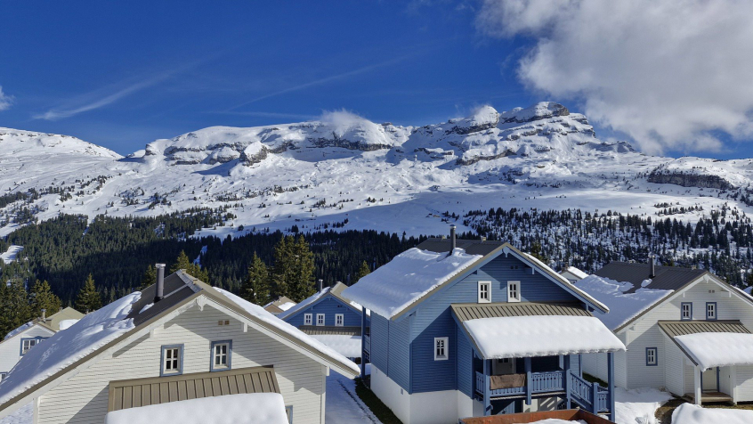 Chalet situé dans le Hameau de Flaine, quartier de chalets scandinaves au centre duquel se trouvent quelques commerces. Piste bleue à proximité pour atteindre les remontées mécaniques et skibus gratuit pour accéder au départ des pistes et rassemblement d'écoles de ski de Flaine Forêt. Casiers à skis