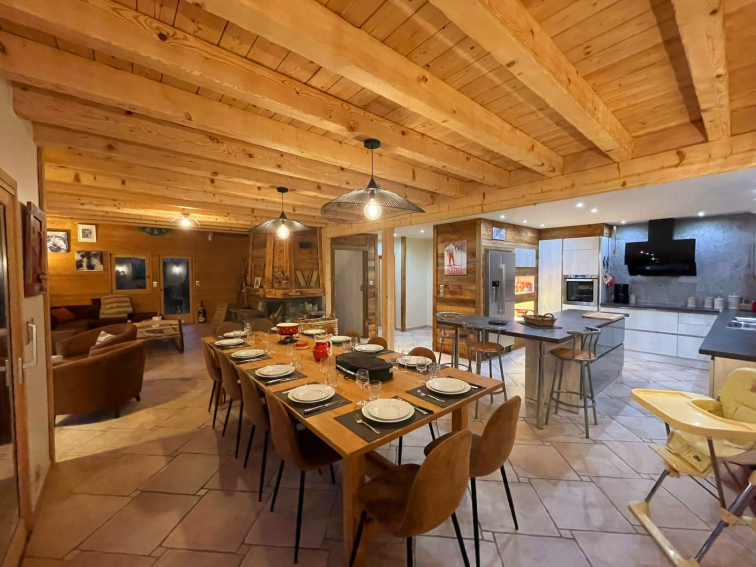 - Salle à manger confortable pour accueillir vos repas raclettes, fondues, etc. avec un accès sur les 2 terrasses.