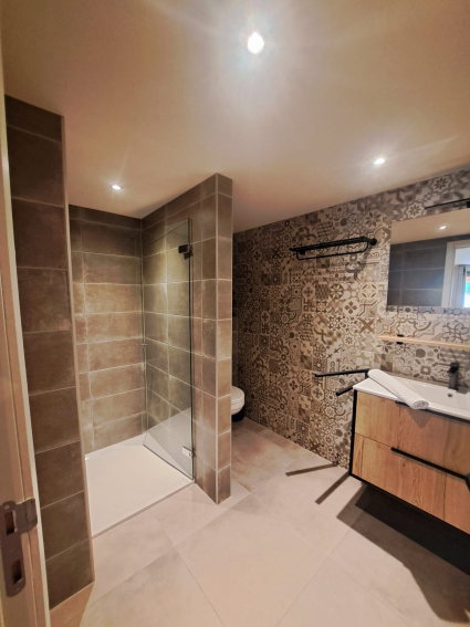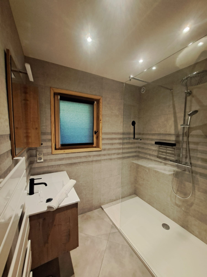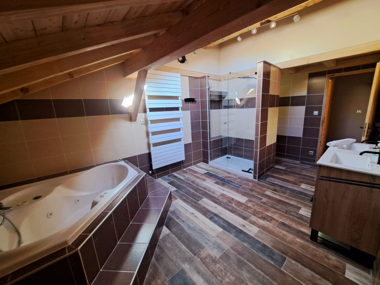 - Salle de bains partagée pour la chambre Edelweiss et Crocus ( douche, bain, double vasque, WC)