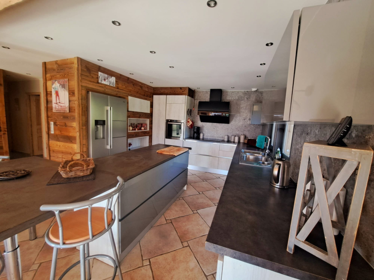 - Cuisine ouverte sur le salon et salle à manger, entièrement équipée (frigo américain, grille-pain, théière, four, micro-ondes, ...)