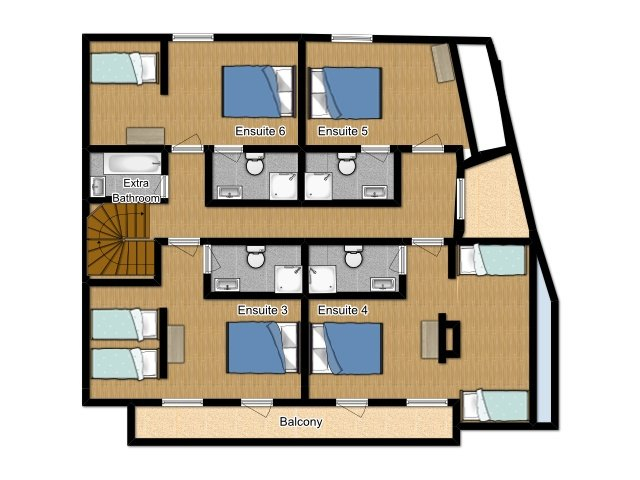 Il se compose de 6 belles chambres spacieuses très confortables avec salle de bain privative (douche, wc, vasque) toutes modulables en Twin ou lit king size (180 x 200) avec téléviseur SMART TV individuelle 82 cm. Il peut accueillir 17 adultes et ou enfants dans d’excellentes conditions de confort.