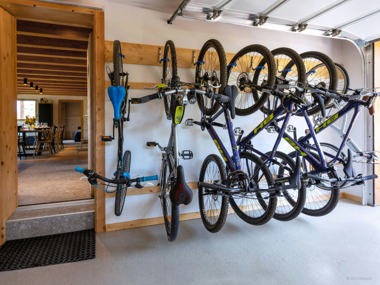 Vous trouverez enfin un local à skis et à bicyclettes. Le garage peut recevoir une voiture, et plusieurs autres prendront place sur les emplacements extérieurs.