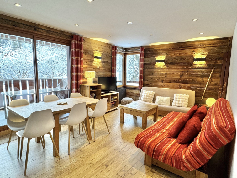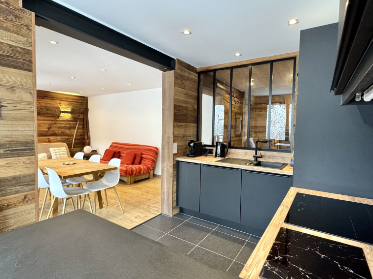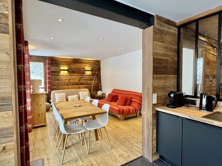 Cet appartement entièrement rénové, vous offrira une grande pièce de vie avec cuisine ouverte équipée, deux canapés lits et un grand balcon avec table pour 6/8 personnes sans vis à vis offrant une vue dégagée sur la forêt enneigée