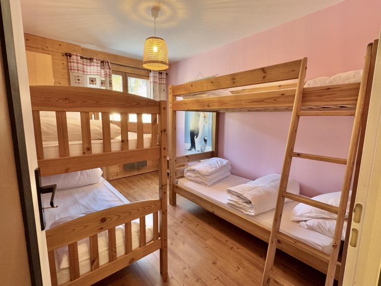 Également, deux chambres dont une avec lit double et une avec deux lits superposés.