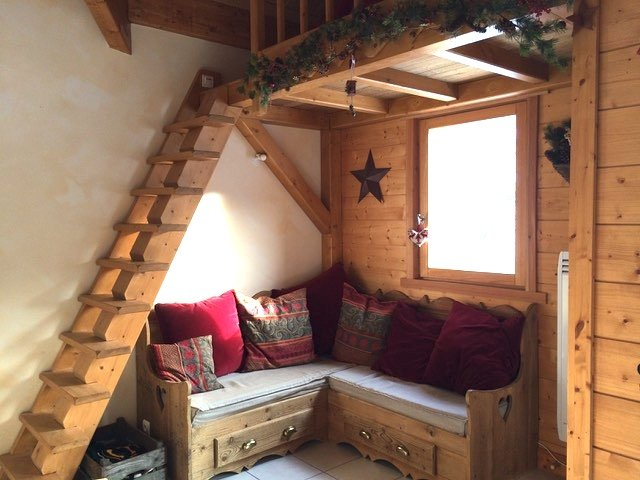 L'appartement se trouve à 2 min à pied de la télécabine, et de nombreux commerces (Boulangerie, pizzeria, loueur à ski).