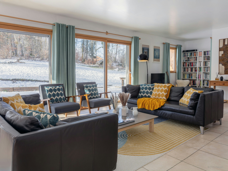 Au rez-de-chaussée, de grandes baies vitrées illuminent l’espace de vie. Le salon est chaleureux avec son poêle à bois, et le coin lecture est rempli de livres et d’instruments de musique, qui agrémenteront vos soirées. Baignée de lumière naturelle, la table à manger est assez grande pour accueillir tout votre groupe. La cuisine ouverte est extrêmement bien équipée et possède de larges espaces de préparation.