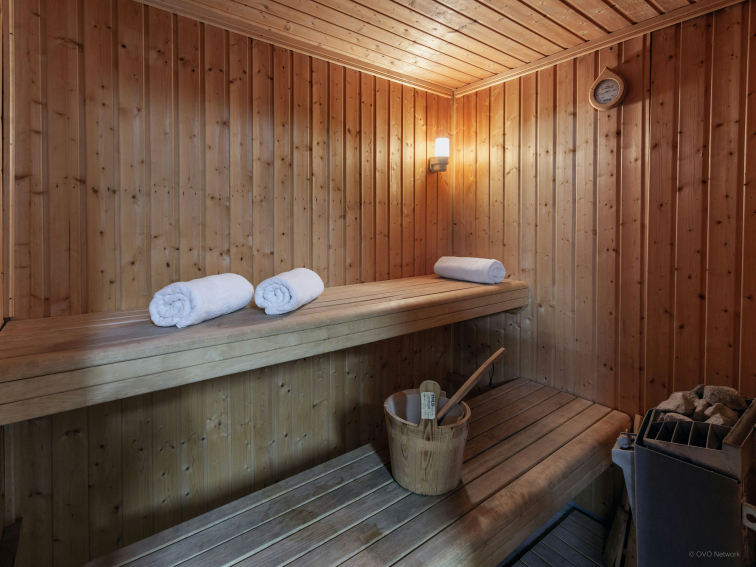 La salle de sport au rez-de-jardin est particulièrement bien équipée en appareils de cardio et de musculation, et compte également une table de ping-pong. Le sauna est évidemment un atout de taille pour un séjour dans les Alpes, et les propriétaires ont pensé à l’accompagner d’une douche. Le local à skis avec sèche-chaussures chauffant et la buanderie équipée sont spacieux et très fonctionnels.