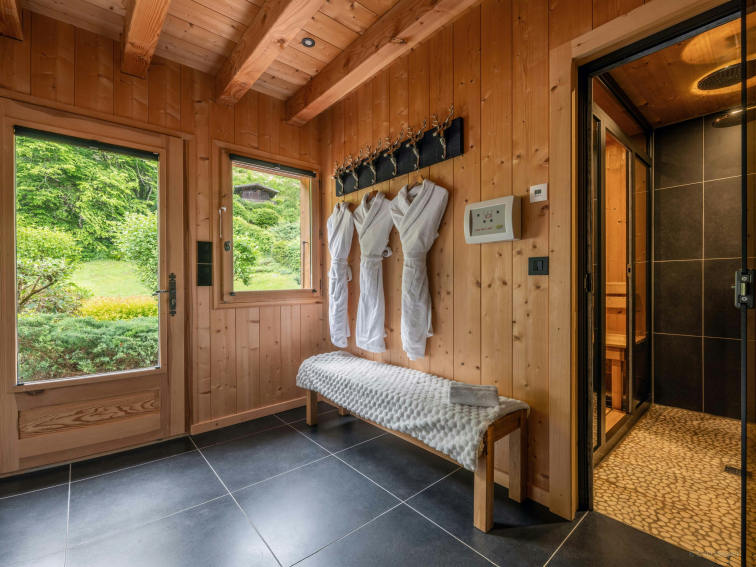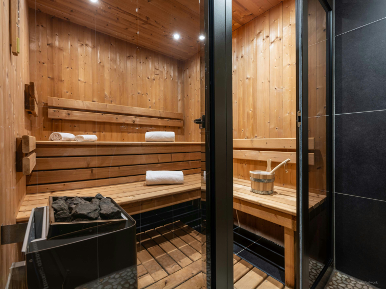 La caractéristique principale du Chalet OCimes est son espace bien-être, qui vous apportera d’inoubliables moments de détente. Il compte un jacuzzi extérieur et un sauna, intelligemment accompagné de deux douches.