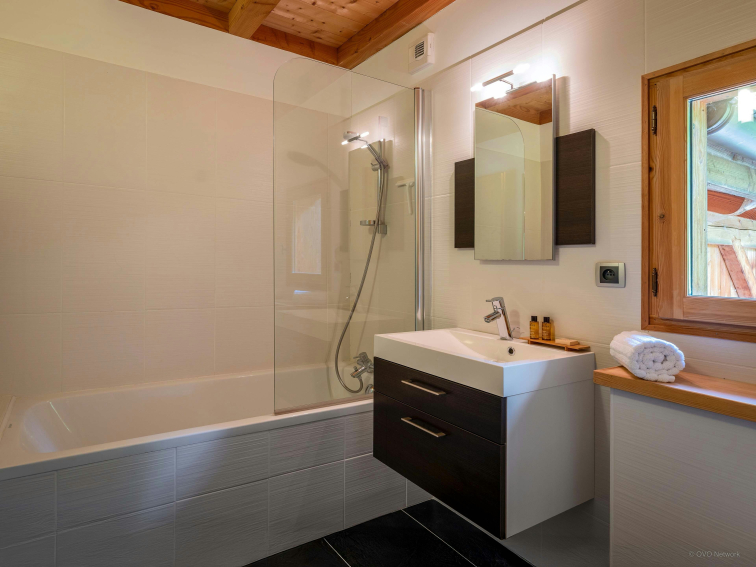Chacune des cinq chambres du chalet compte une salle de bains attenante, certaines avec une baignoire.