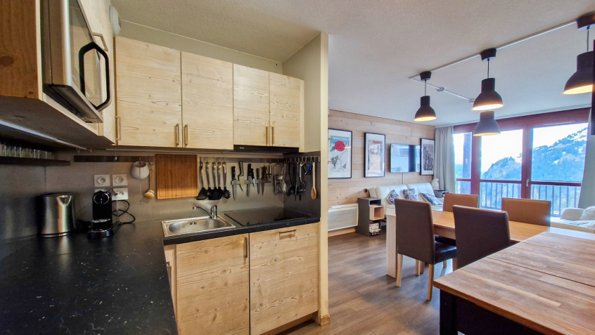 - Cuisine ouverte avec plaques vitrocéramiques, lave-vaisselle, micro-onde grill
