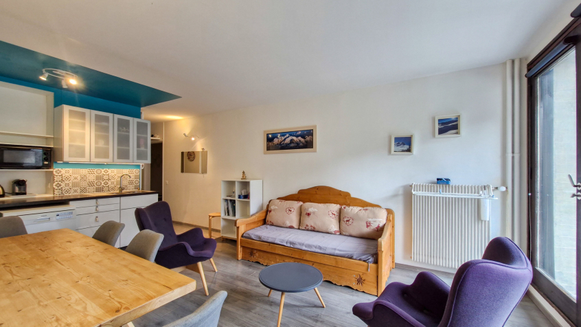 3 pièces + coin montagne confort 53 m2 au 2ème étage avec balcon Sud. Appartement rénové avec WIFI gratuit.