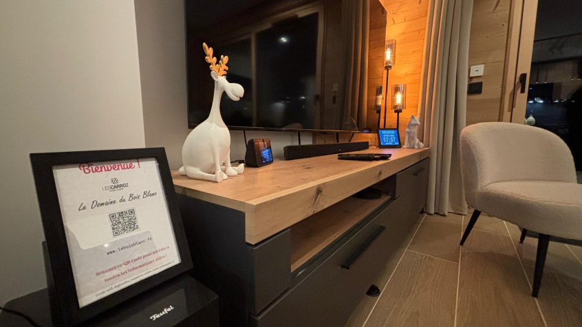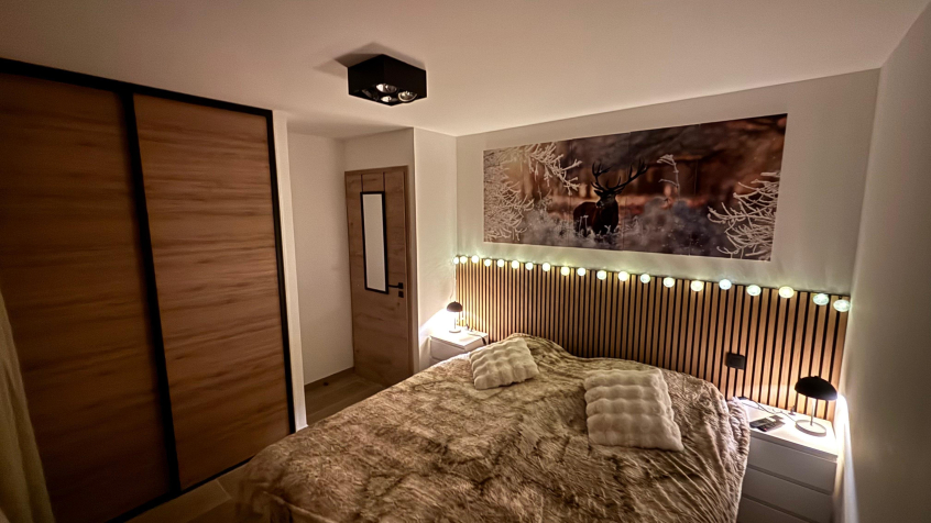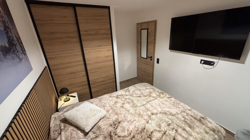 Magnifique appartement neuf de 65 m² avec espace extérieur. Le centre de la station est accessible à pied et un arrêt de navette se situe à côté de la résidence pour vous emmener à la télécabine. Décoré avec goût, il offre une belle pièce à vivre avec terrasse et TV, une chambre double 160x200, une chambre avec deux lits 90x200, un coin montagne avec lits superposés 80x190, TV dans chaque chambre, une salle de douche et un WC séparé. Maximum : 4 adultes + 2 enfants.