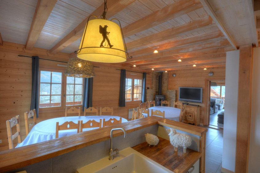 L'équipement est complet, accès internet wifi, 2 télévisions 107cm, 2 cuisines complètes avec chacune son lave-vaisselle, four traditionnel, four micro-onde, bar. Cafetière Nespresso (capsules classiques) et cafetière classique à filtres papier, services à raclette et à fondue sont à votre disposition), véritable babyfoot de café de marque Bonzini en accès libre, TV par satellite, 2 garages doubles avec portes électriques + parking privatif extérieur, sèche chaussures électrique pour 20 paires de chaussures de ski, véritable sauna finlandais, salon de jardin pour 15 personnes, barbecue Weber à charbon de 58cm de diamètre, 2 lits-parapluie (matelas d'origine symbolique, prévoir le matelas dont l'enfant a l'habitude) et 2 chaises hautes, etc... tout cet équipement est inclus, et privatif à l'usage exclusif des clients du chalet.